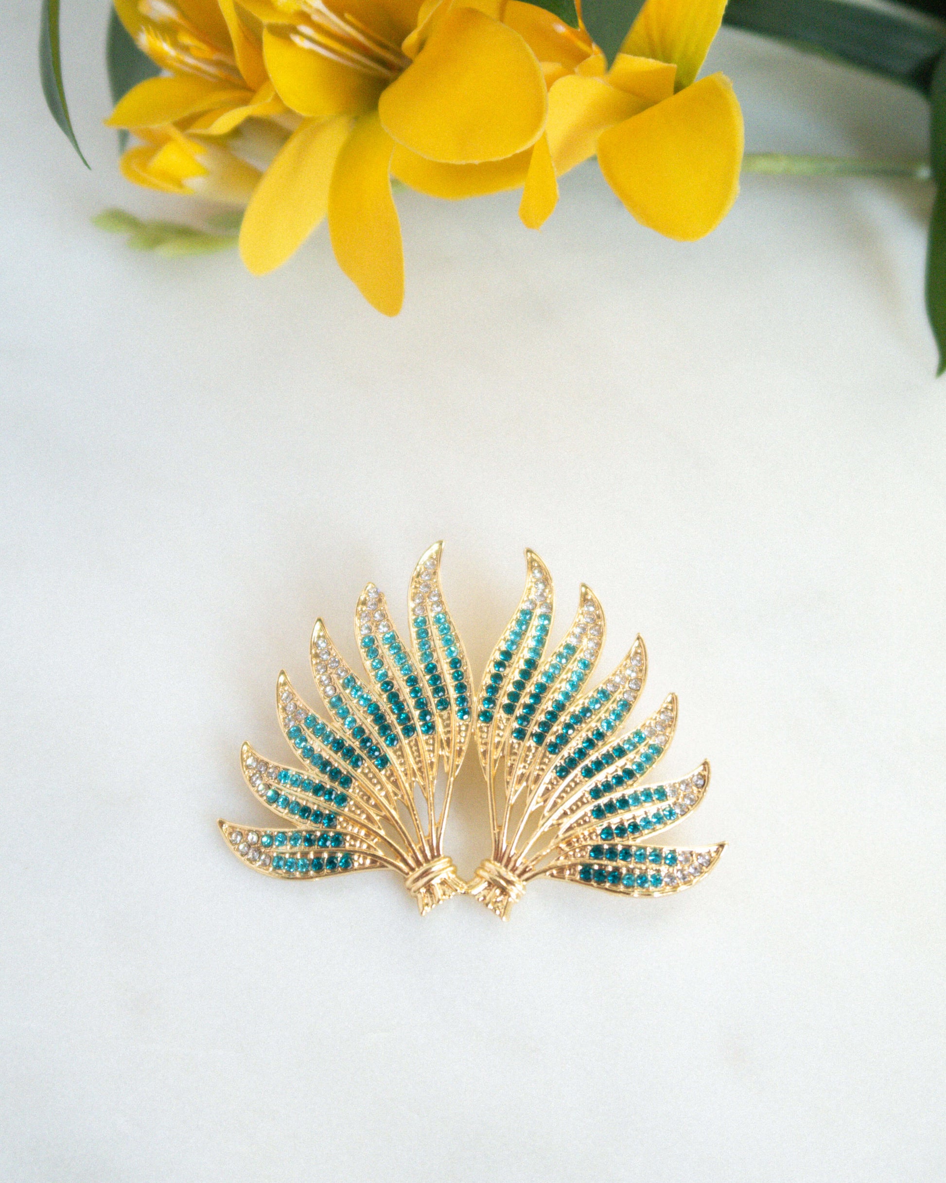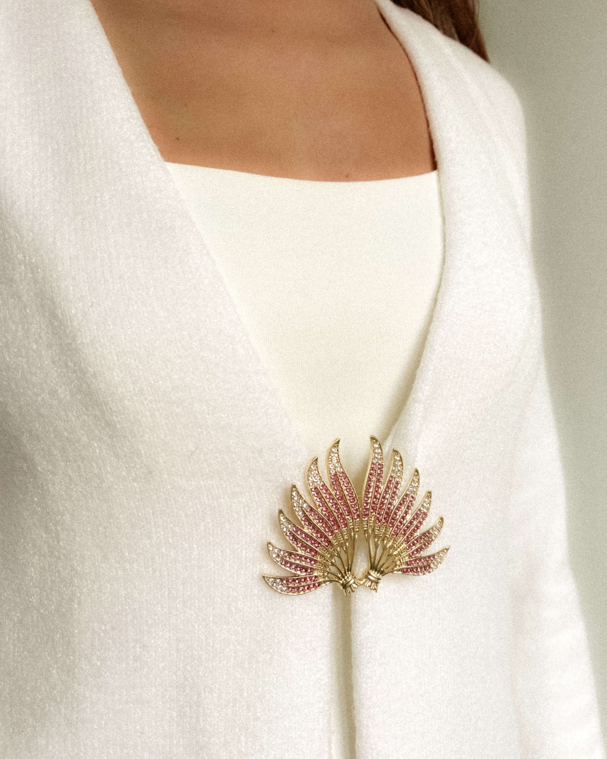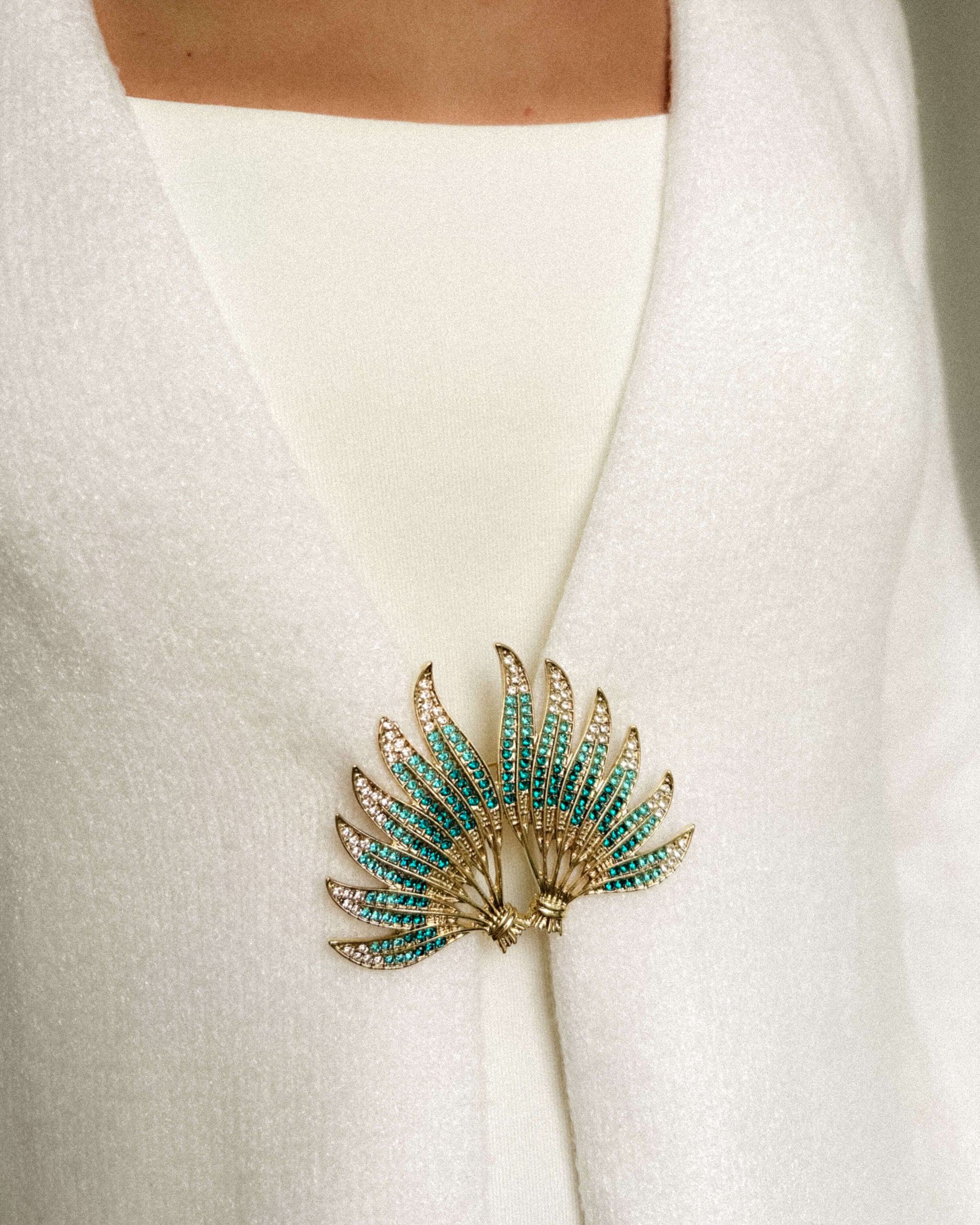 Broșă aripi cu zirconii, din aliaj metalic special pentru bijuterii.