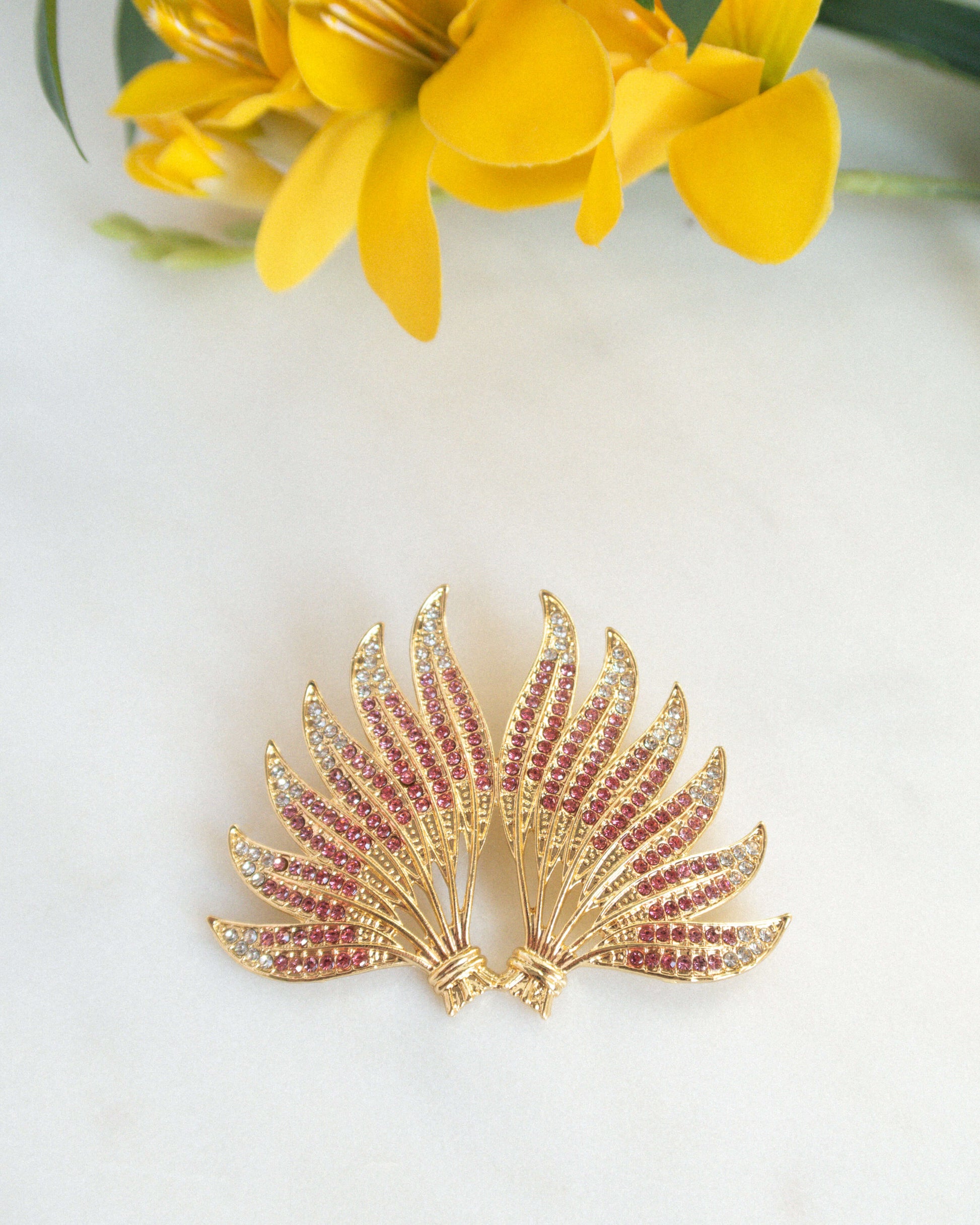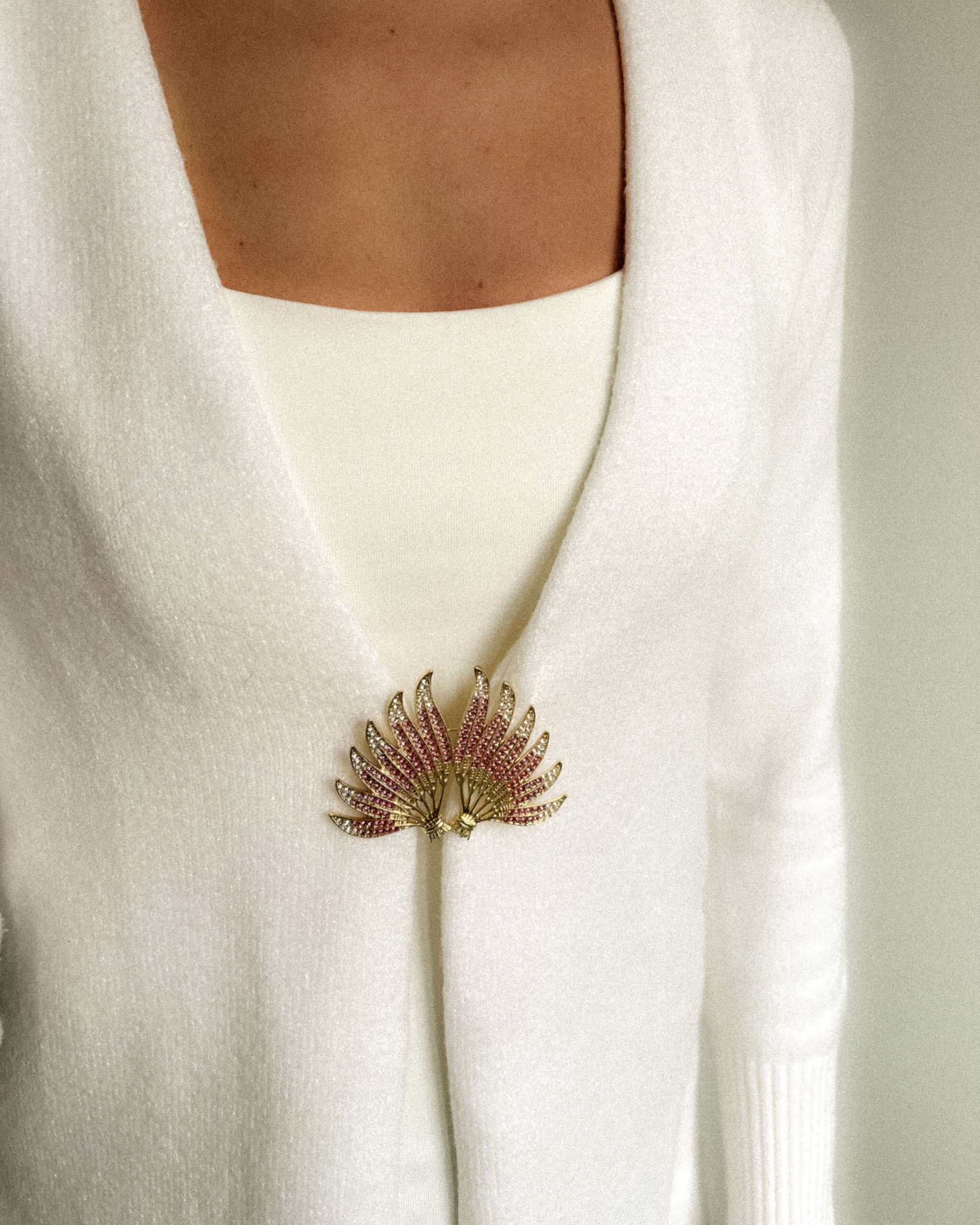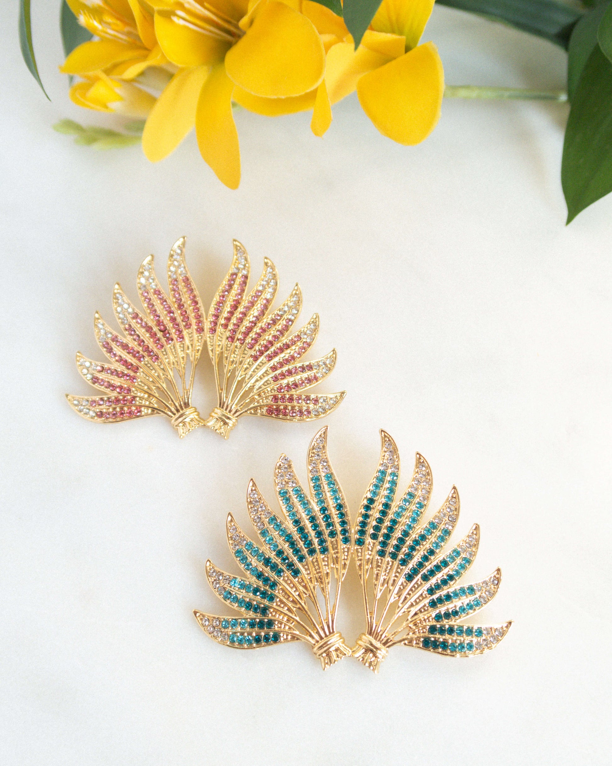 Broșă aripi cu zirconii, din aliaj metalic special pentru bijuterii.