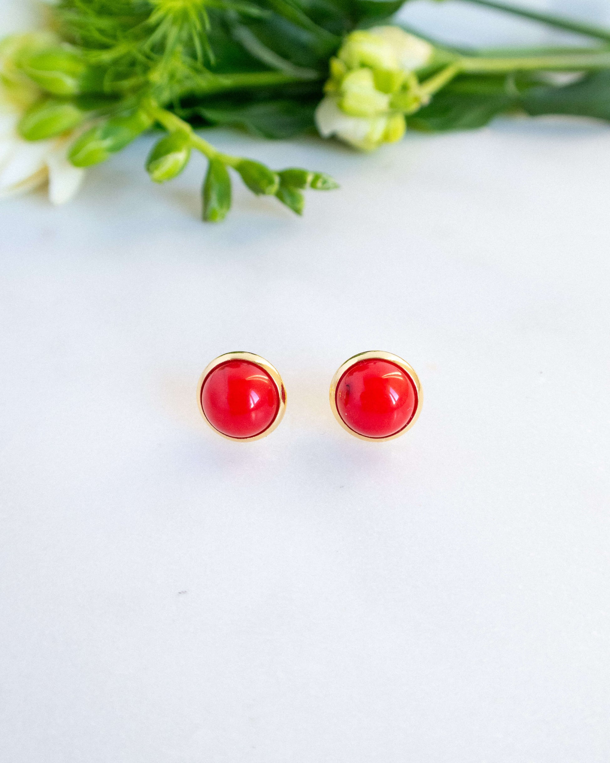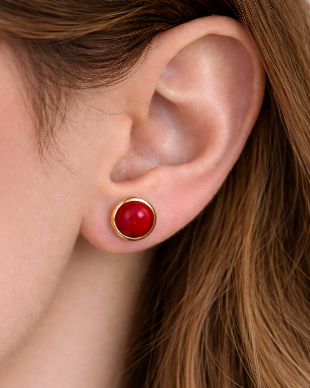 - Cercei mici din coral natural electroplacat cu aur 18 karate, închidere cu șurub din alamă placată cu aur 18 karate, fără nichel sau alți alergeni