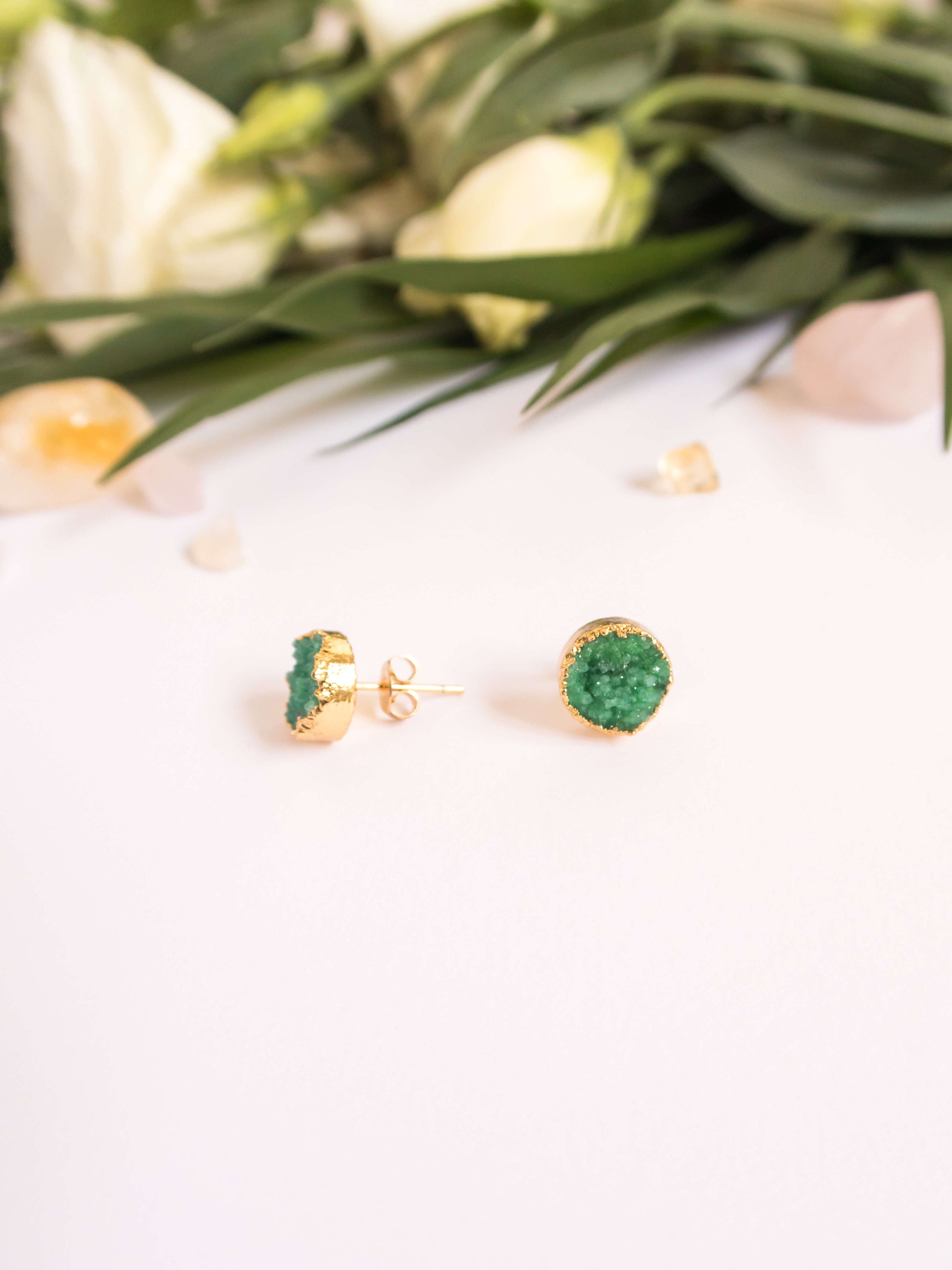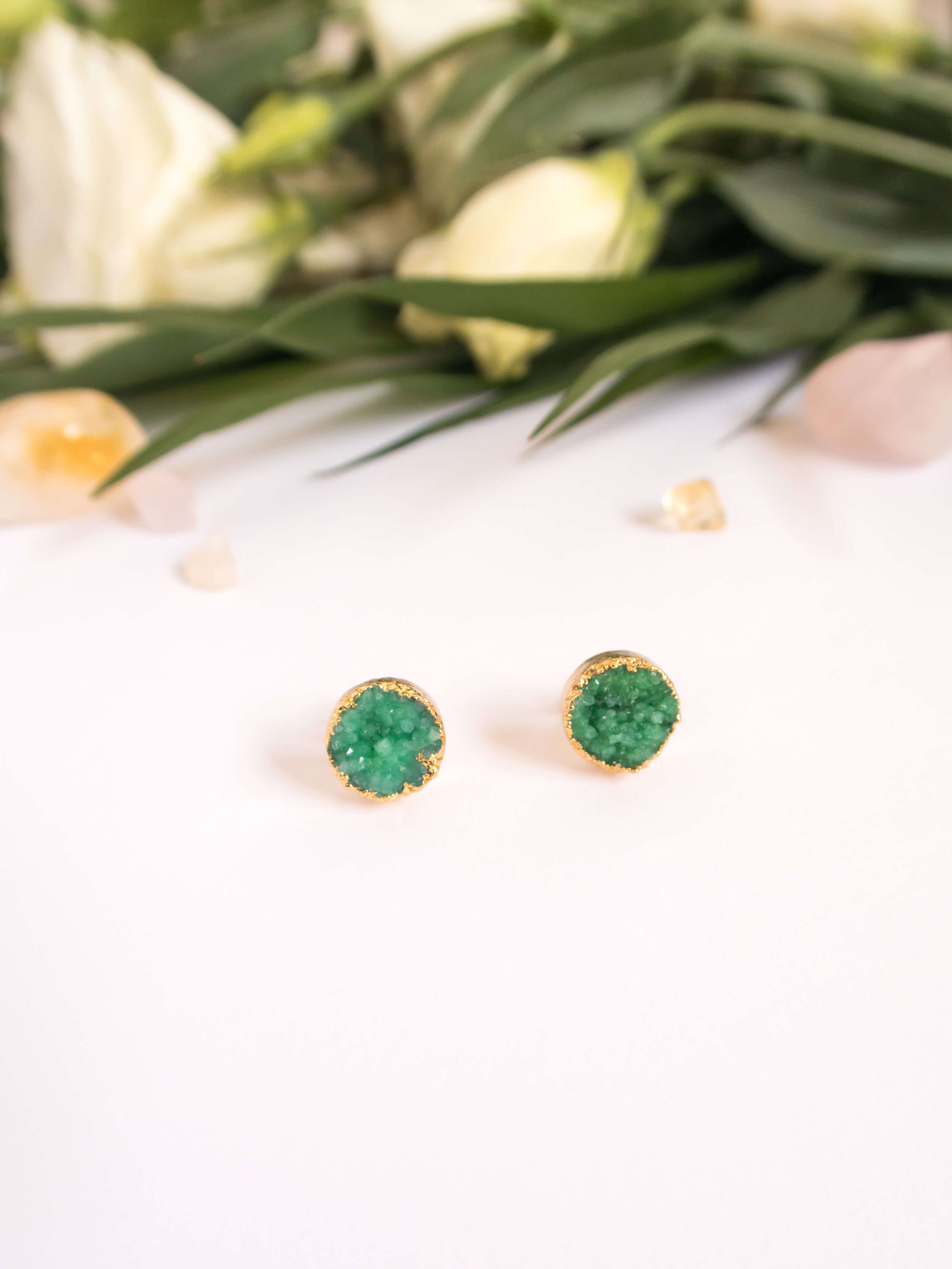 - Cercei mici din cuarț natural vopsit electroplacat cu aur 18 karate, închidere cu șurub din alamă placată cu aur 18 karate, fără nichel sau alți alergeni