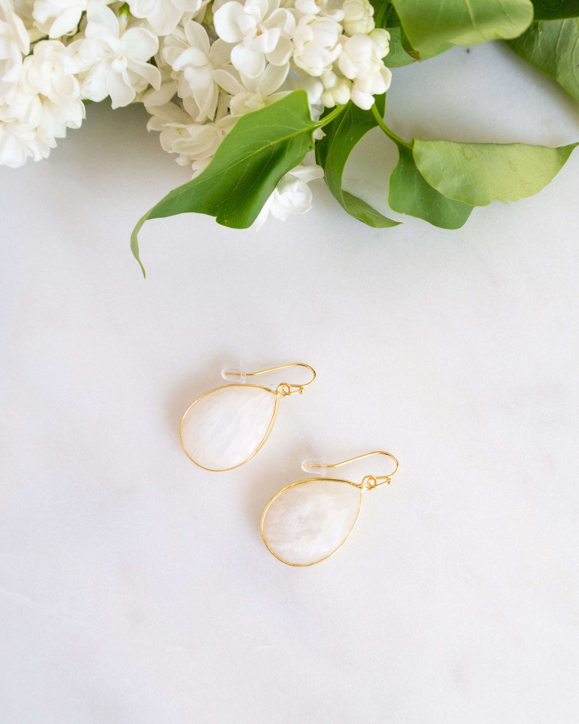 - Cercei ușori din piatra lunii, alamă electroplacată cu aur 18 karate