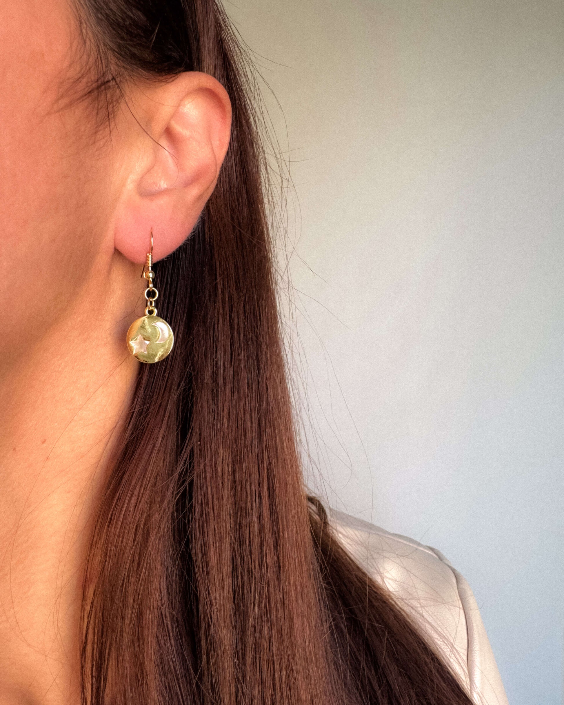 - Cercei foarte ușori cu stea și lună din sidef de scoică electroplacată cu aur 18 karate
