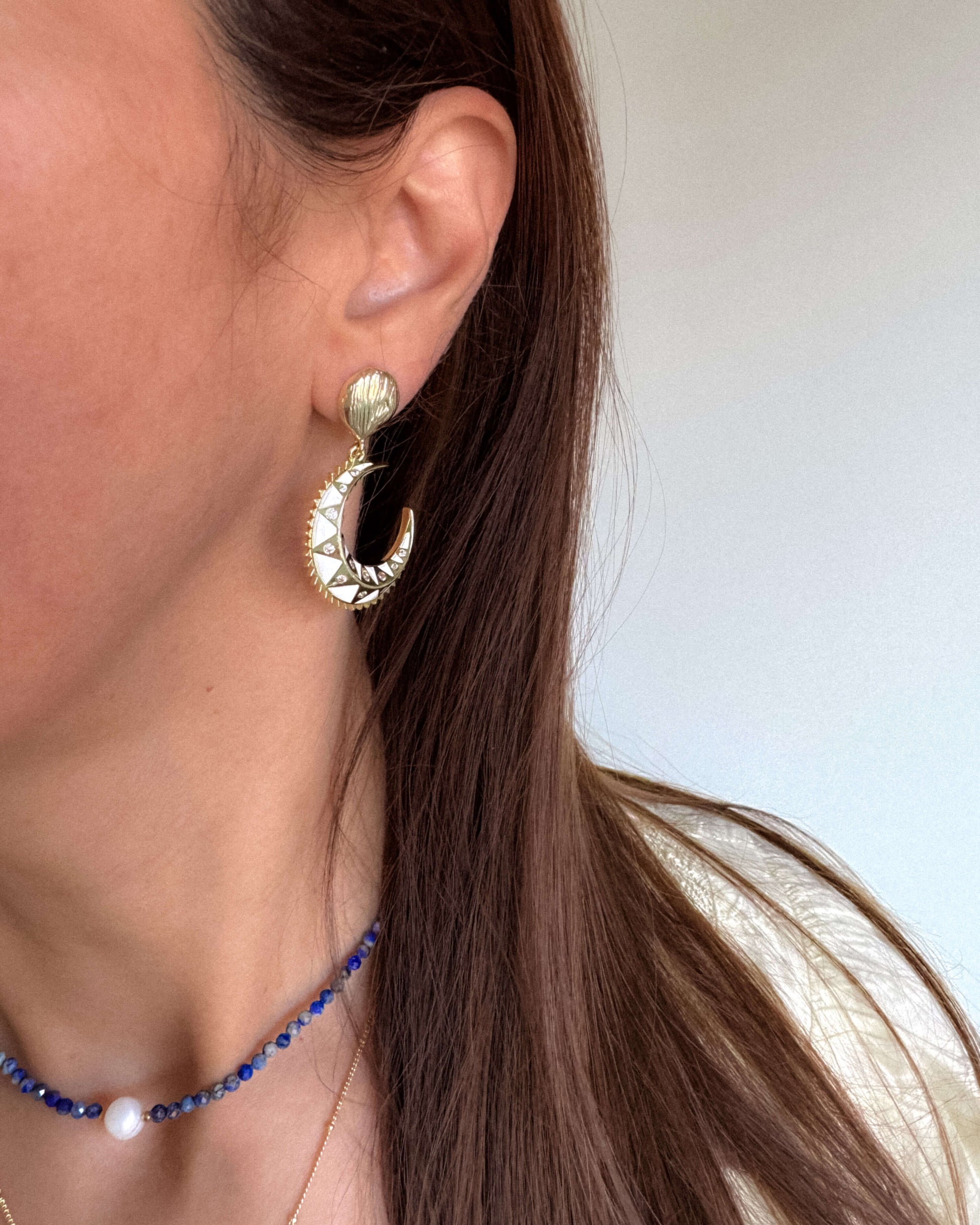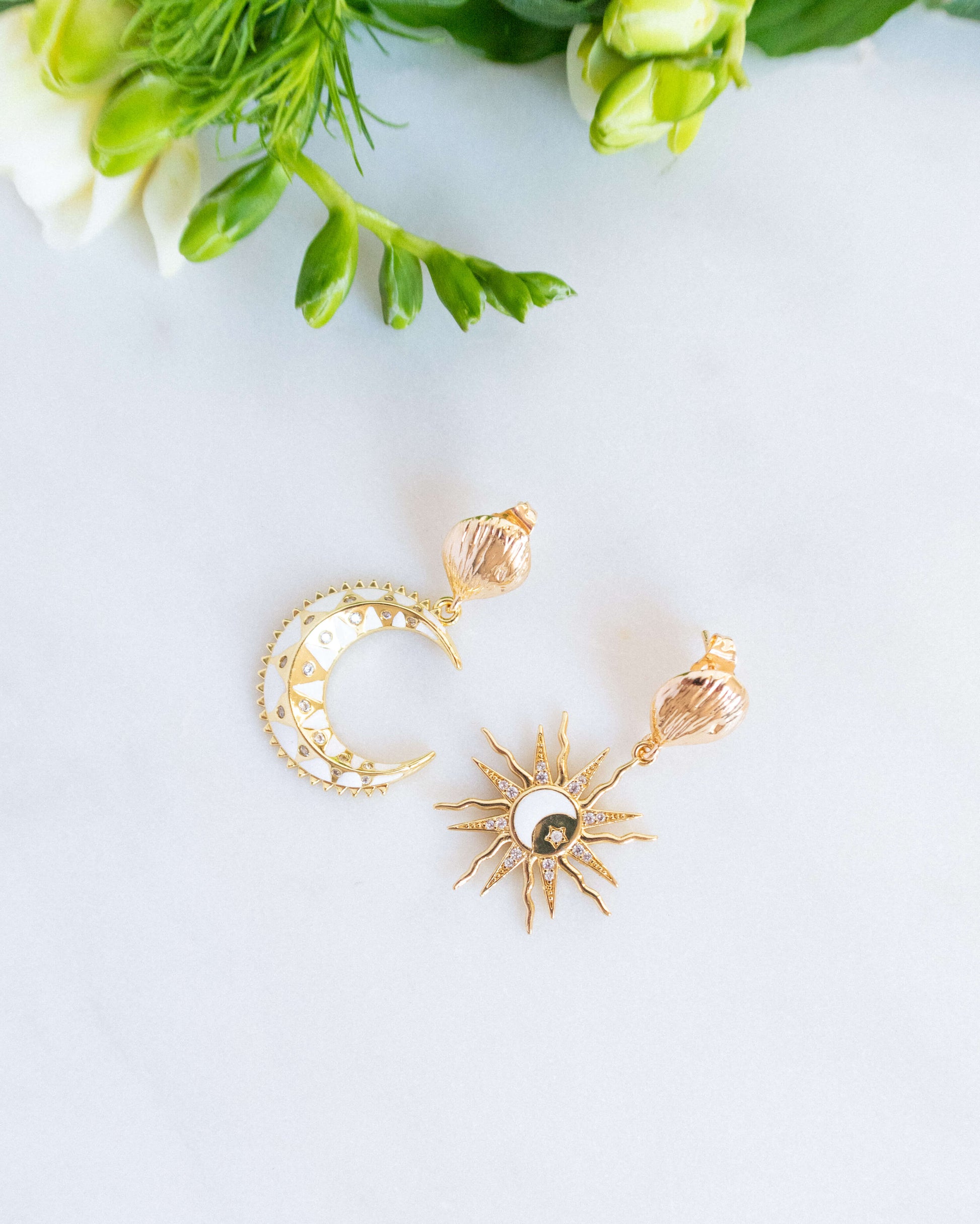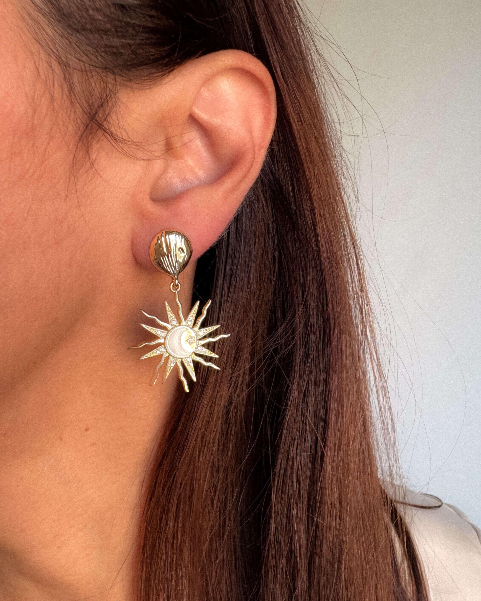 - Cercei foarte ușori soare emailat cu zirconii, alamă electroplacată cu aur 18 karate