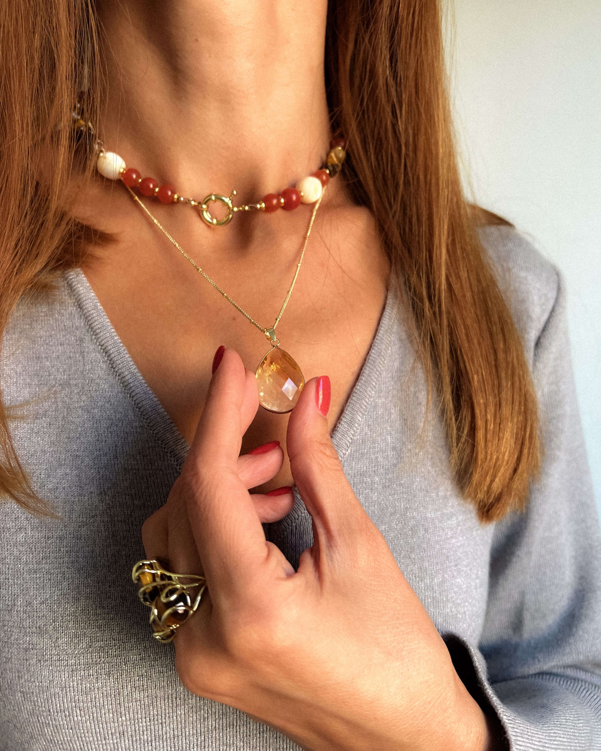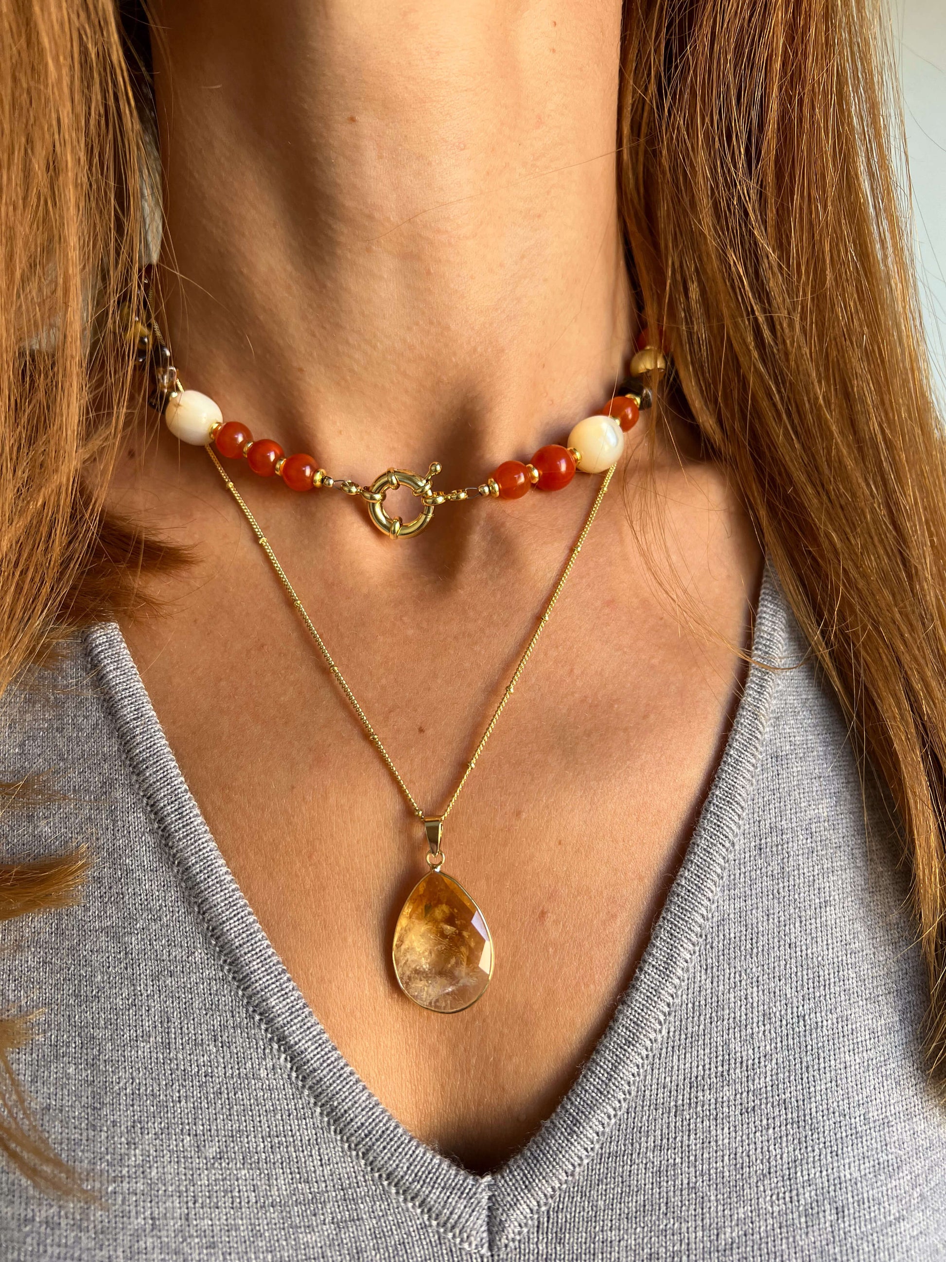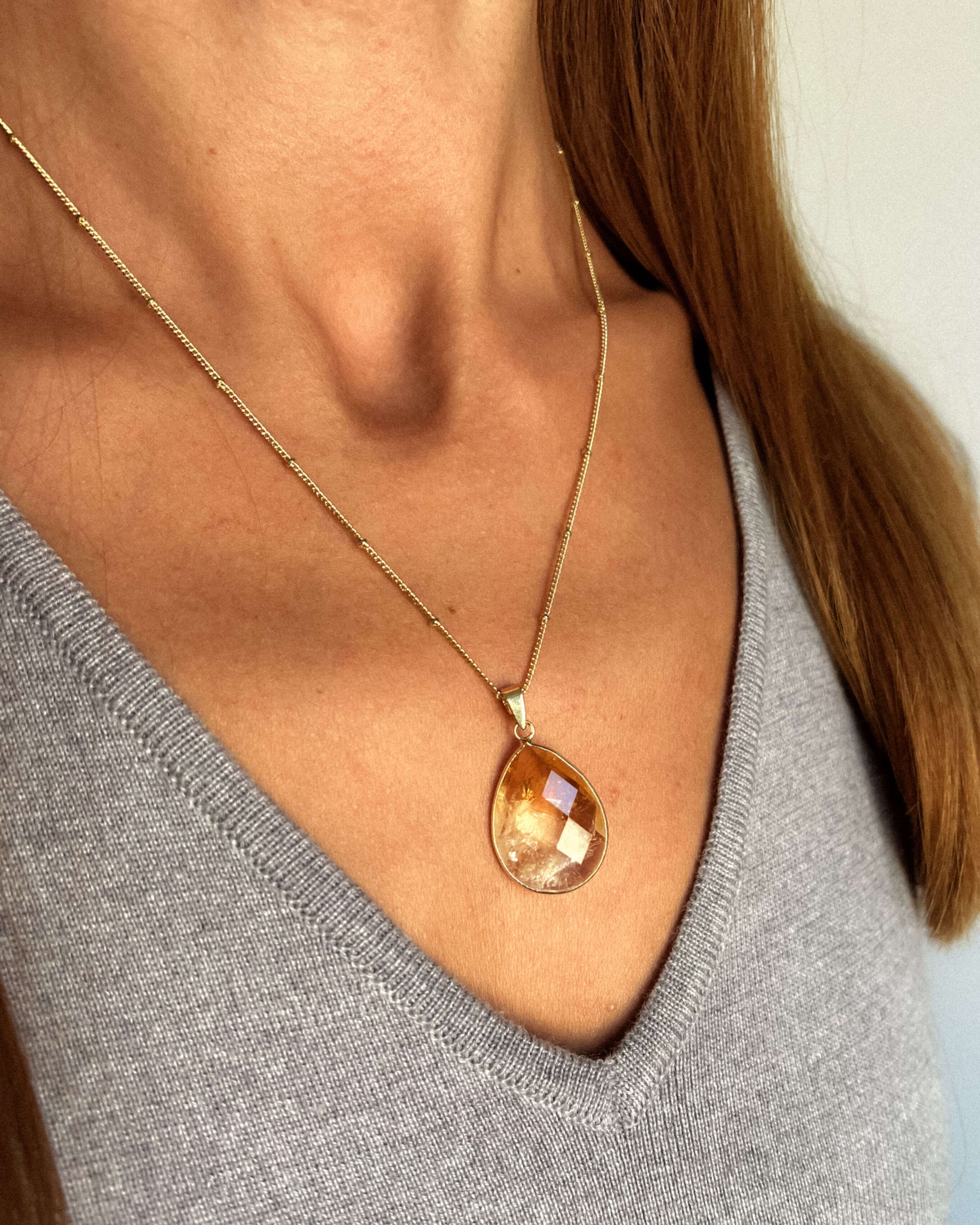 - Colier cu pandant cu 2 fețe din citrin, alamă electroplacată cu aur 18 karate