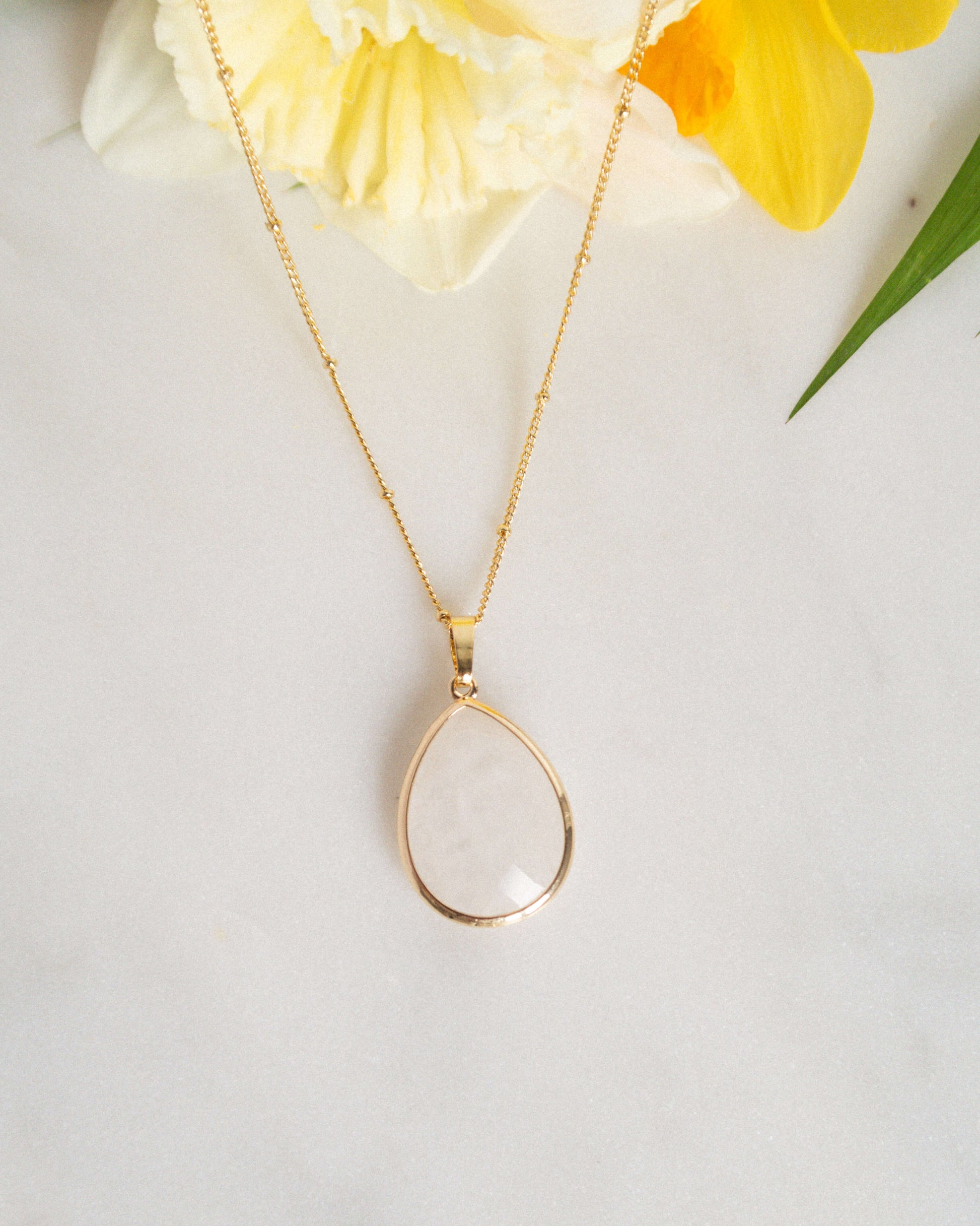 - Colier cu pandant cu 2 fețe din piatra lunii, alamă electroplacată cu aur 18 karate