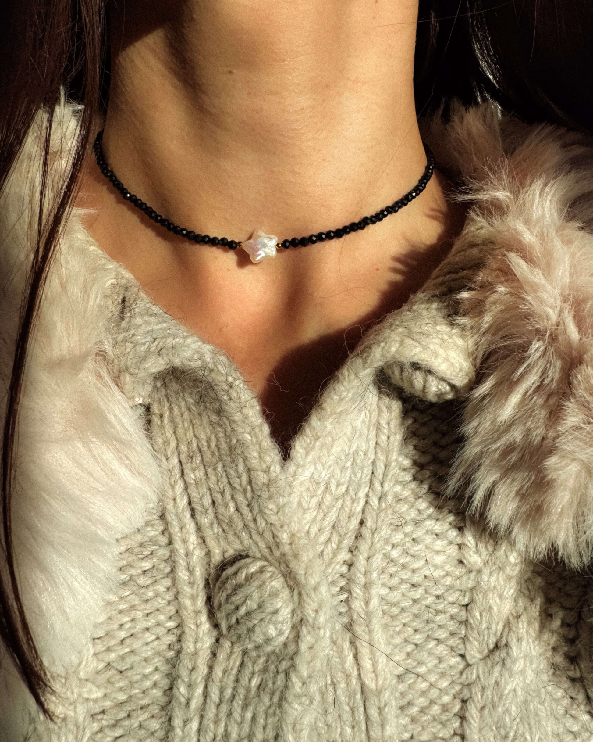 Colier stea perlă naturală onix NERA