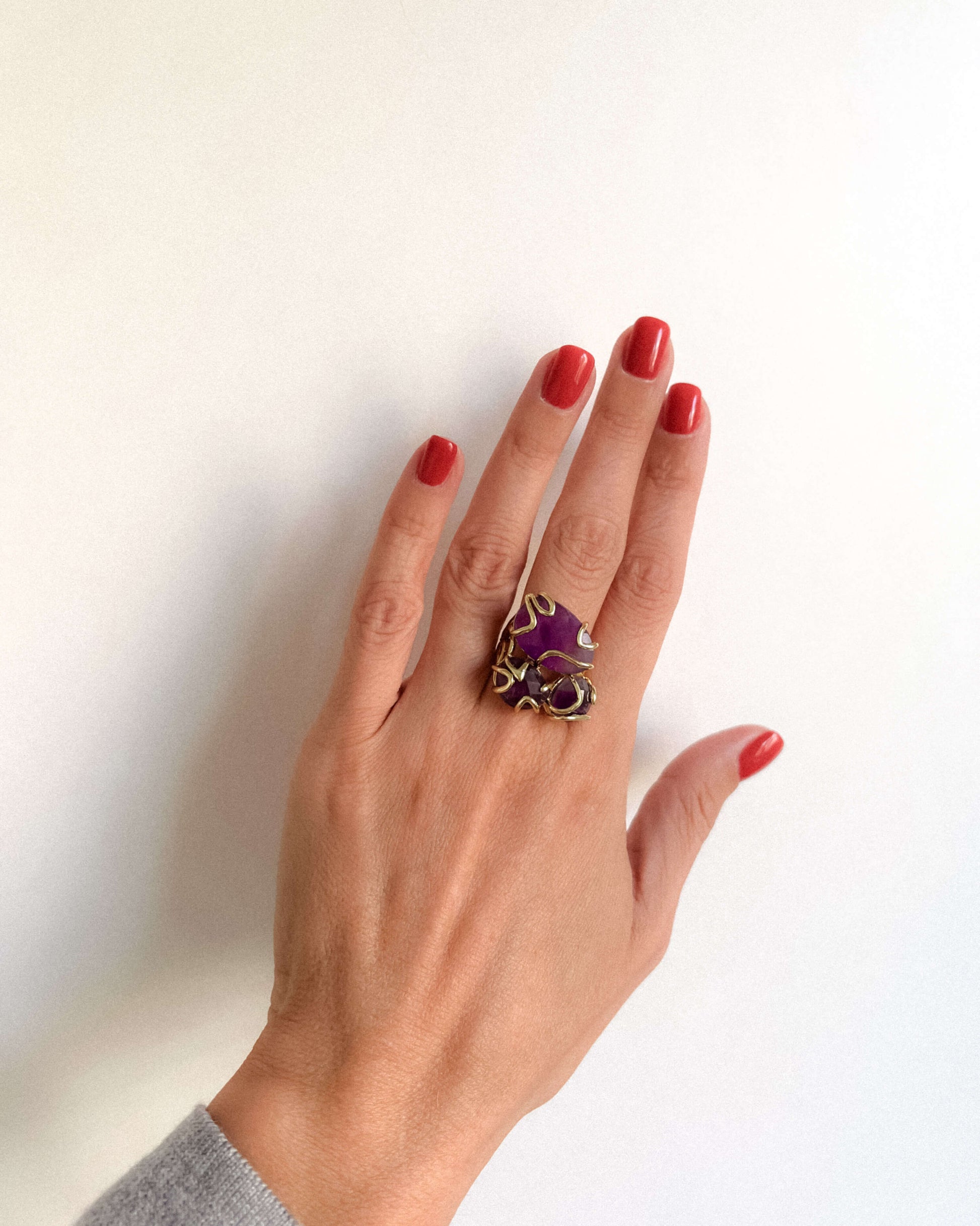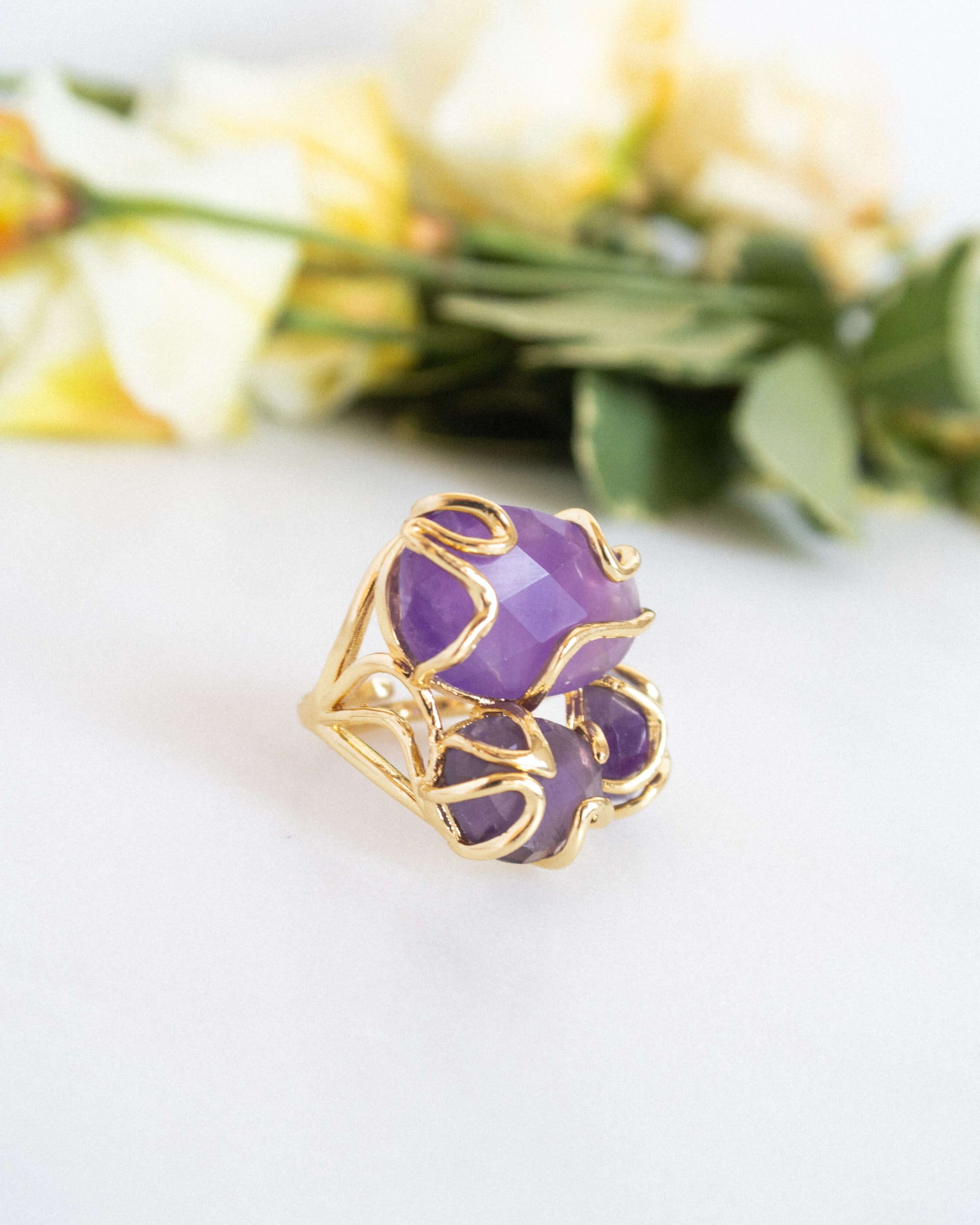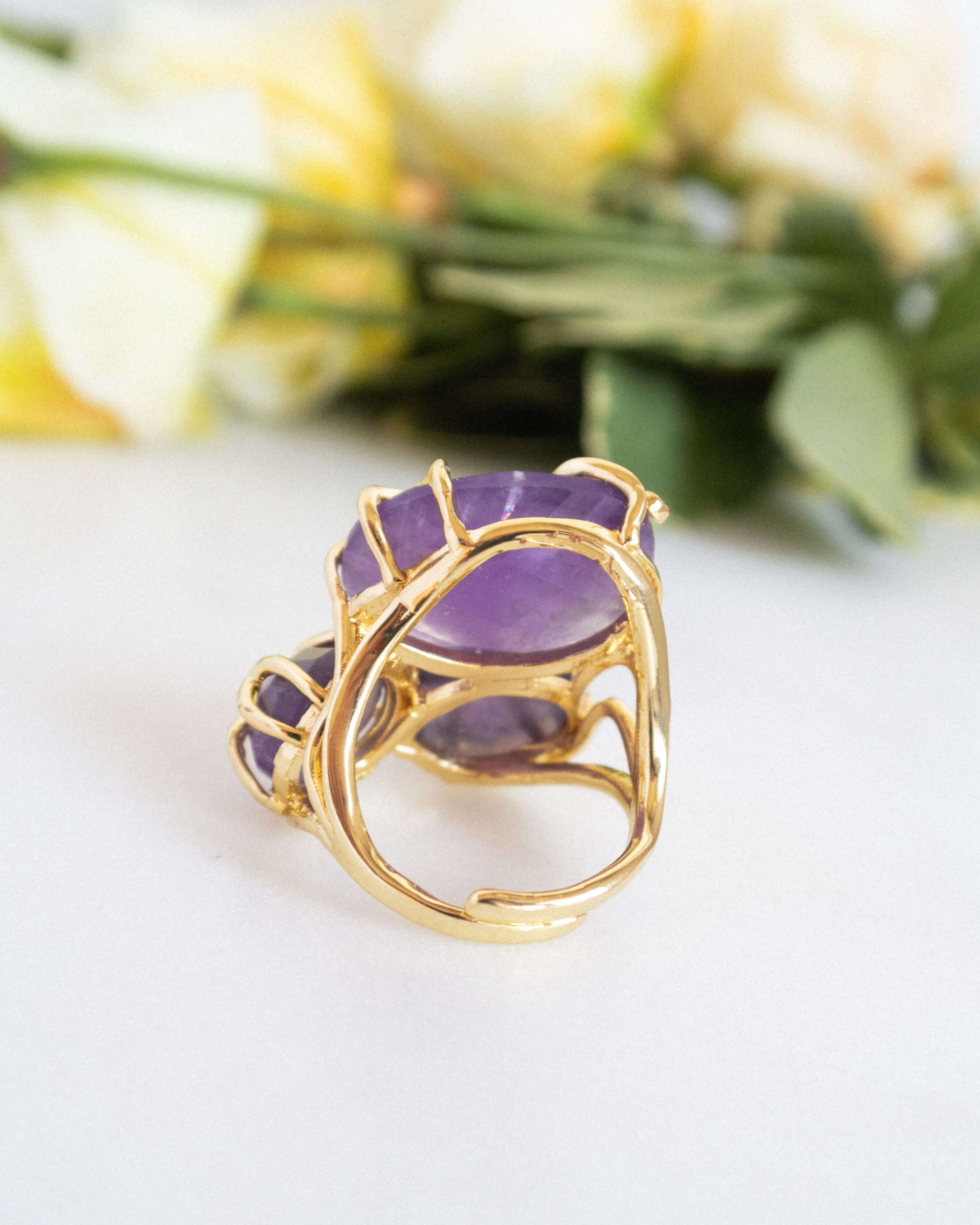 - Inel reglabil cu ametist și alamă electroplacată cu aur 18 karate