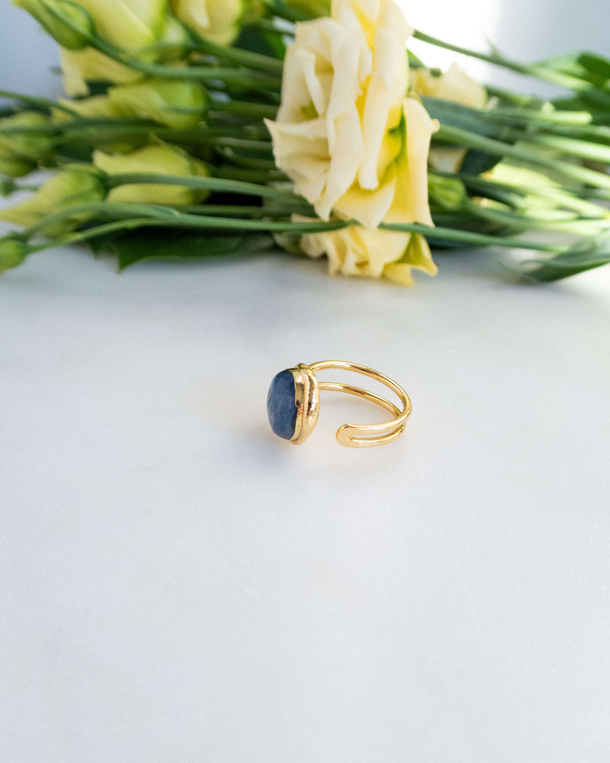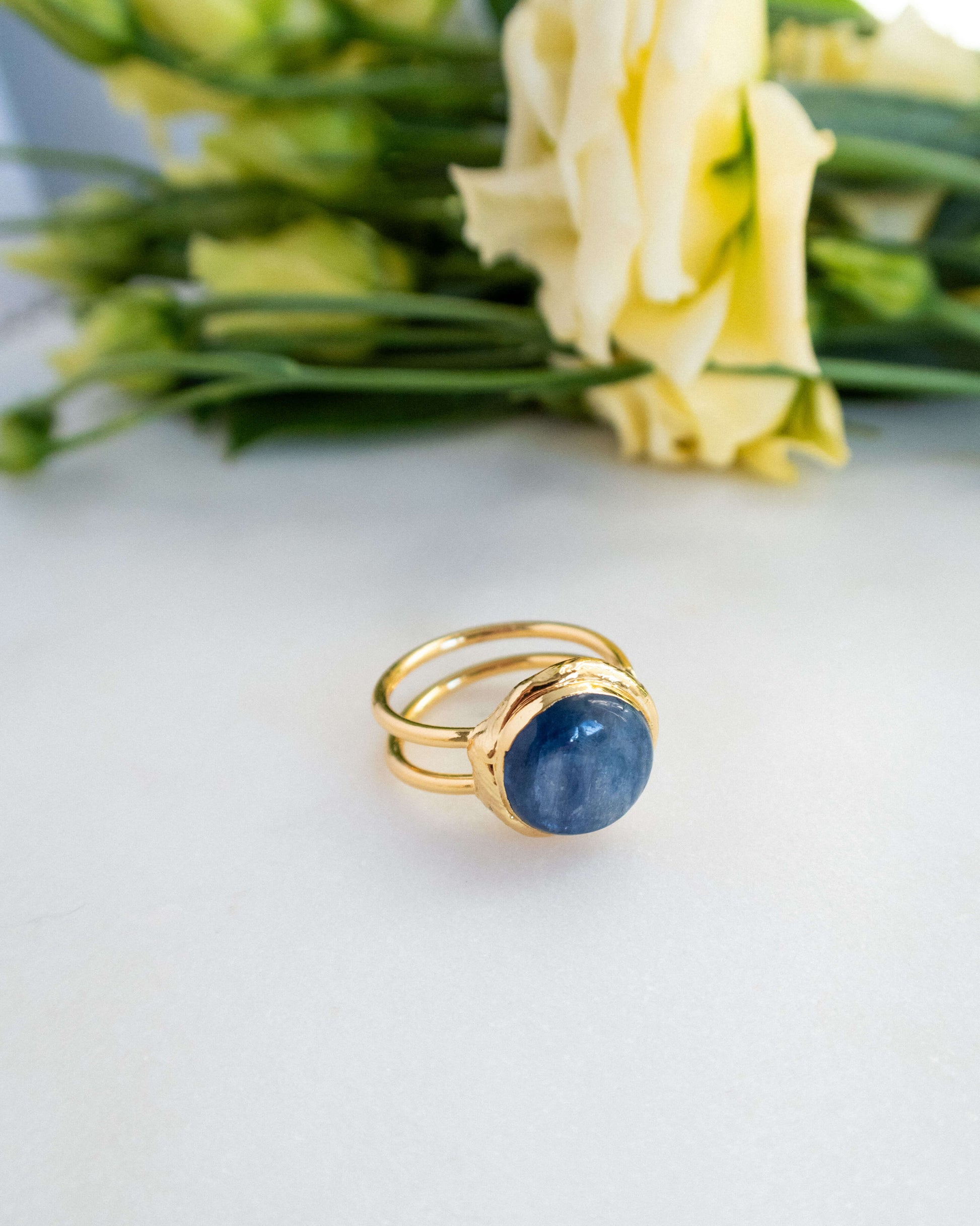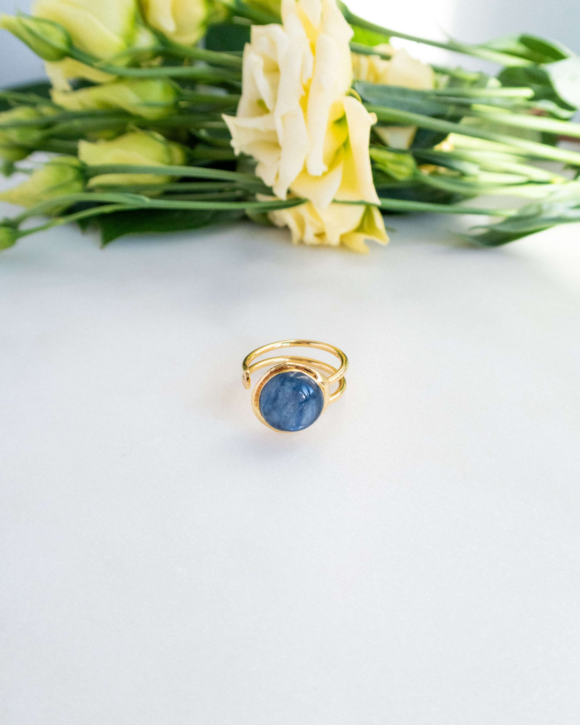 - Inel reglabil cu kyanit și alamă electroplacată cu aur 18 karate