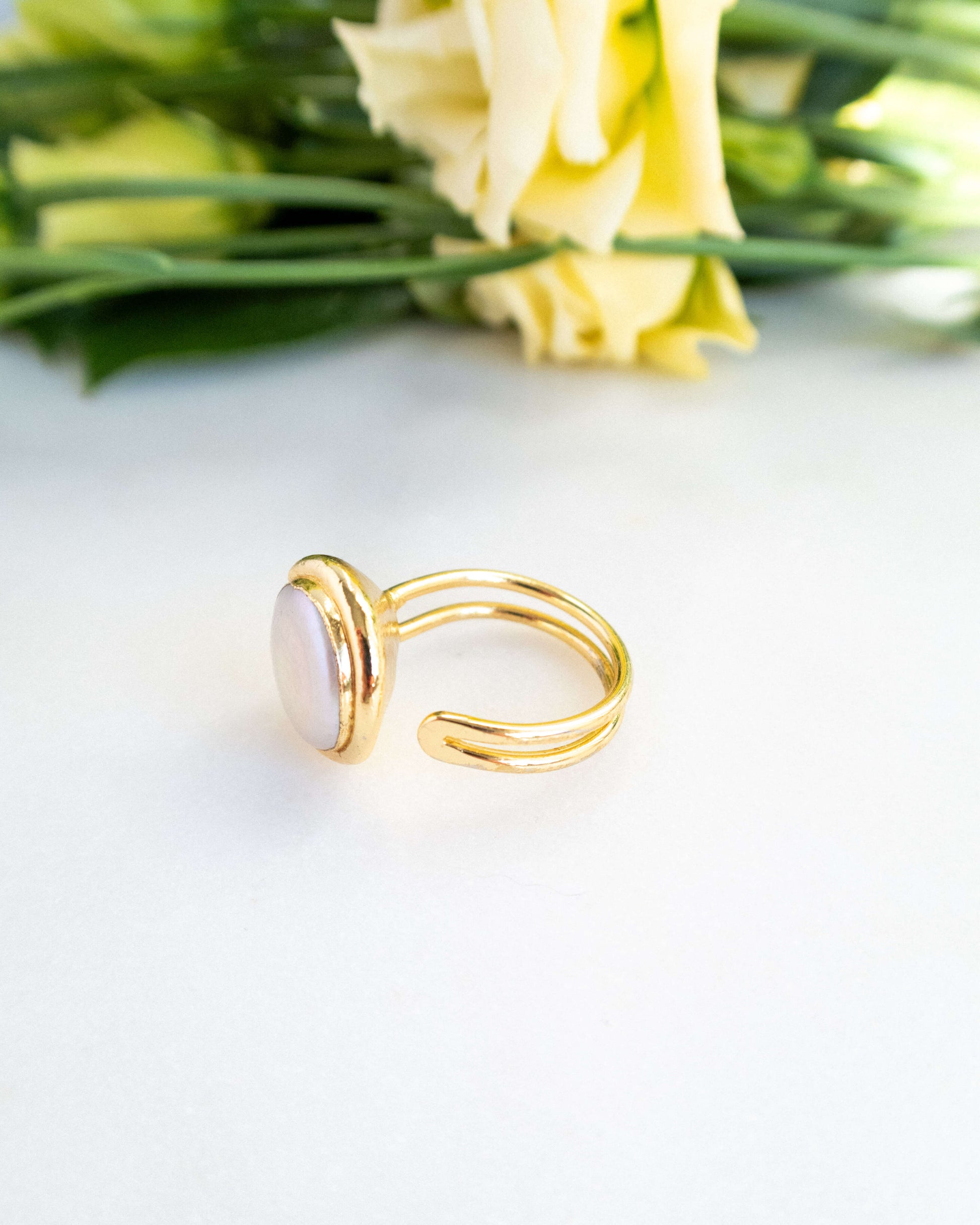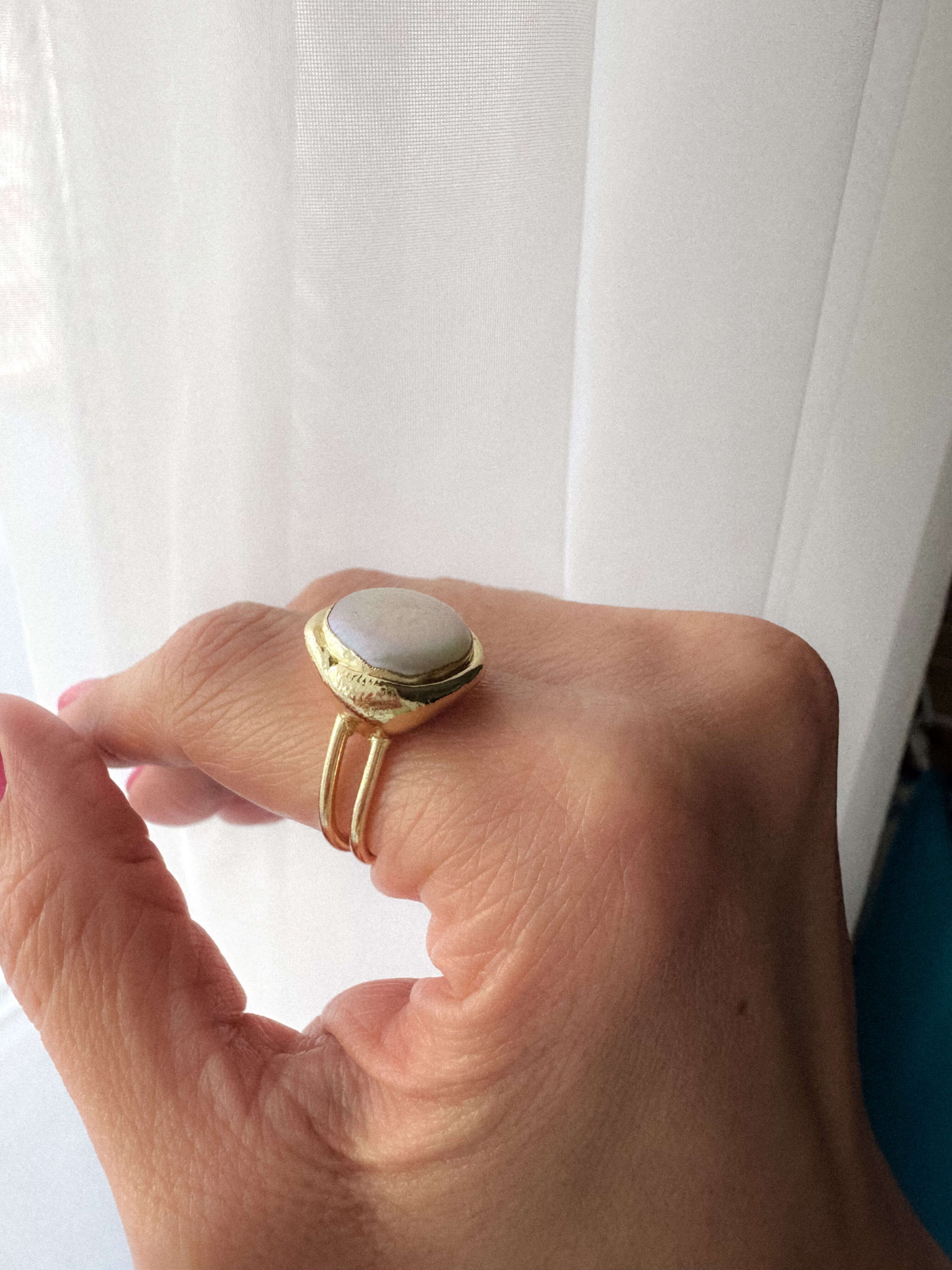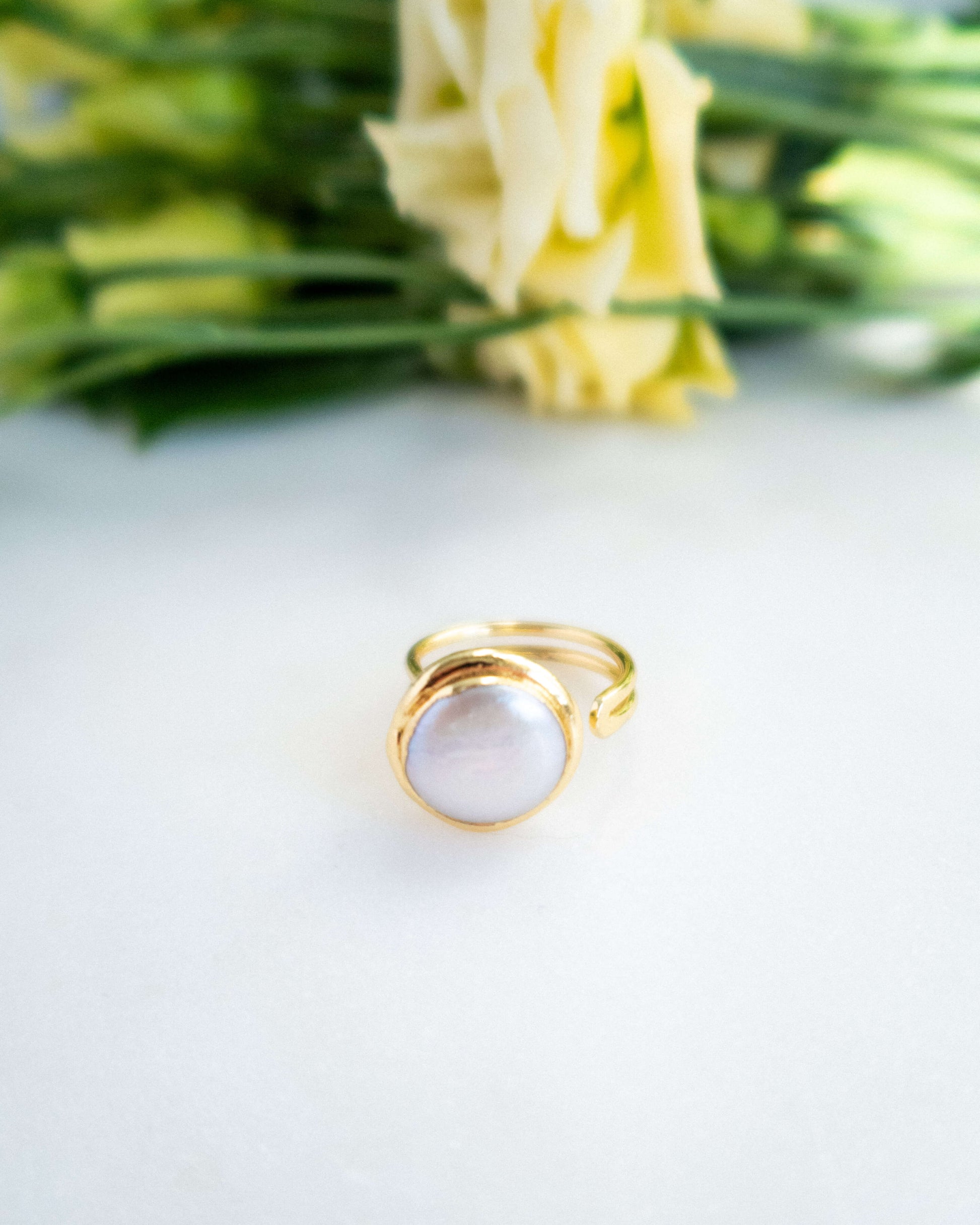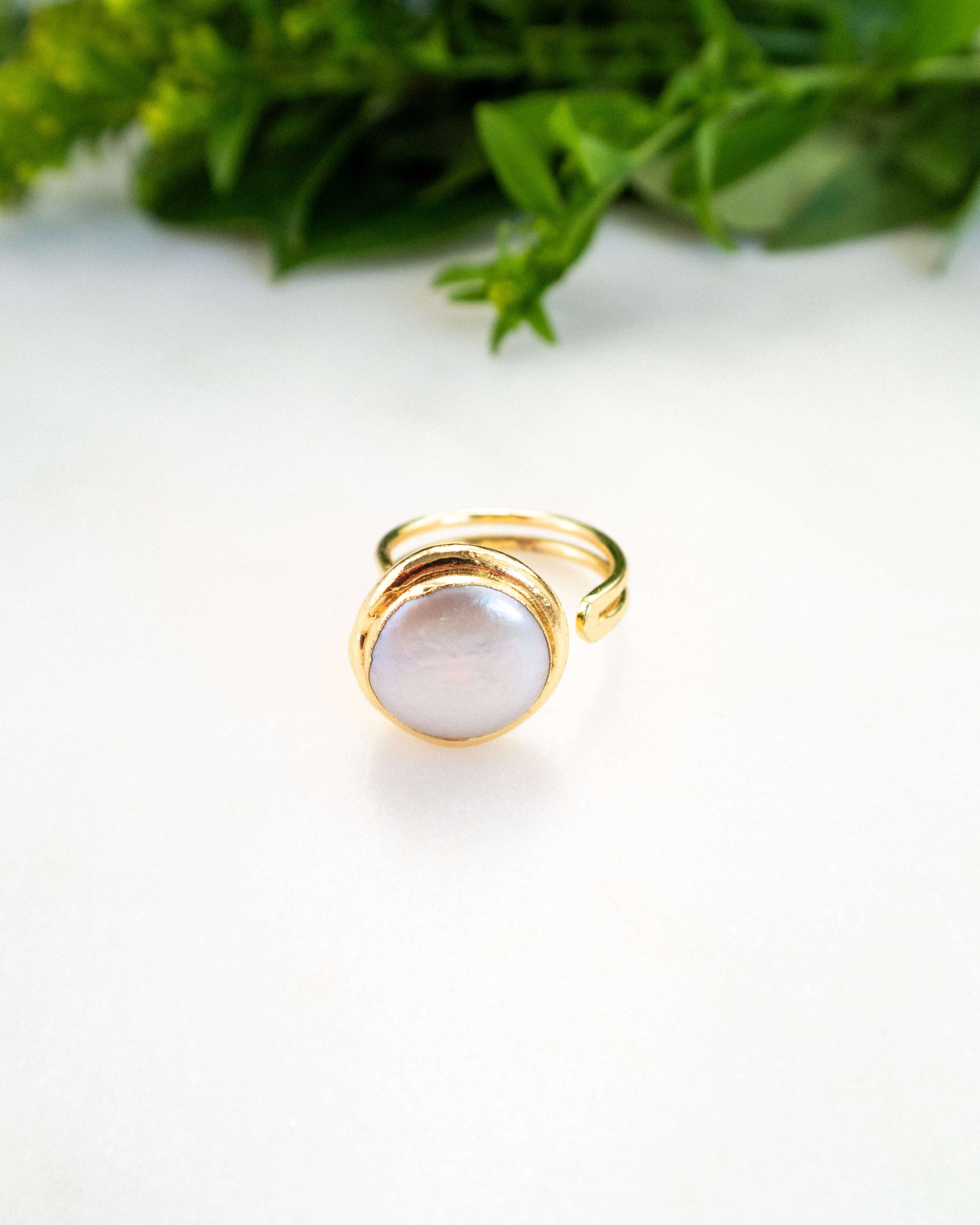 - Inel reglabil cu perlă naturală baroc și alamă electroplacată cu aur 18 karate