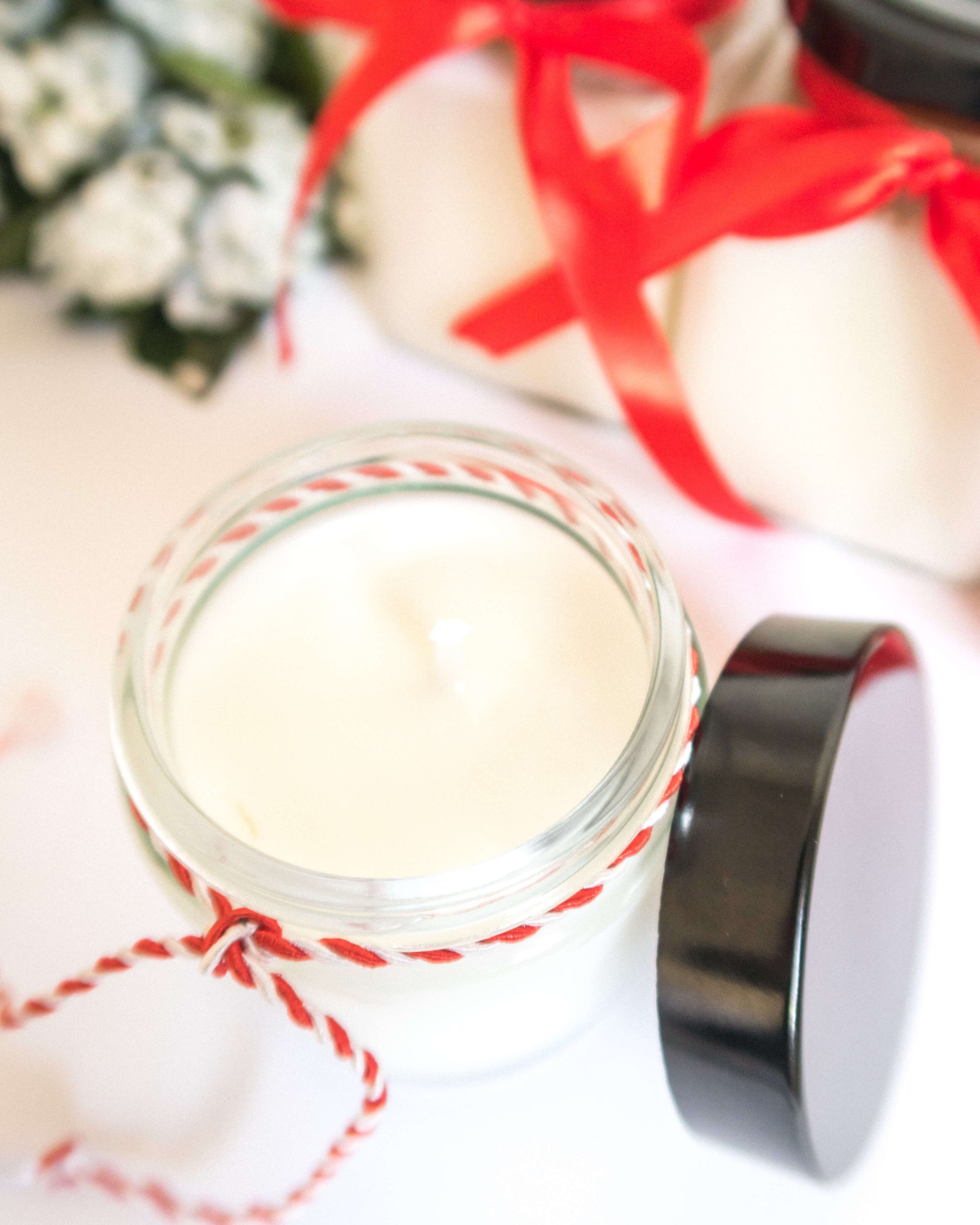 Lumânare parfumată handmade din ceară de soia în vas de sticlă. După ce te bucuri de aroma ei, poți folosi recipientul pentru decor, depozitare sau alte funcționalități.